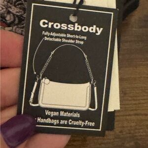 Edgy crossbody bag with skull and heart motifs. Features pink and black color scheme. Ideal for bold fashion statements.