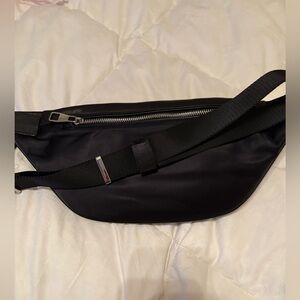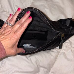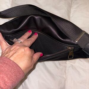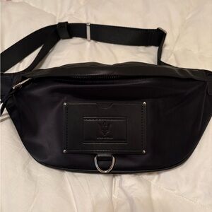 Large belt bag, fanny pack, wild world, black with heavy silver tone hardware