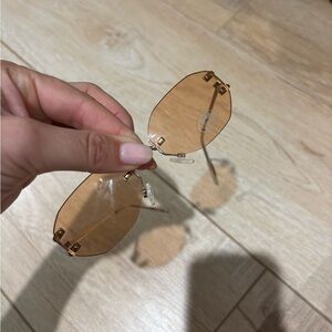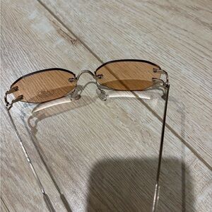 Sleek and modern design. Pink /orange lenses with a frameless design