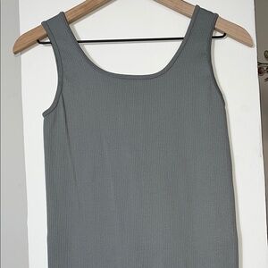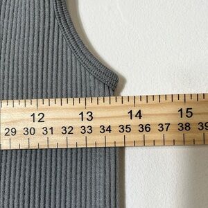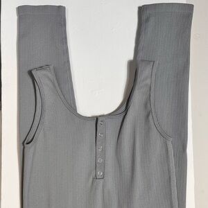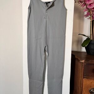 Sleeveless ribbed jumpsuit. Button-up front. Comfortable and stylish.