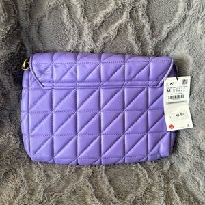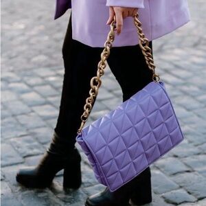 New Zara Lavender Quilted Shoulder Bag with Gold Chain