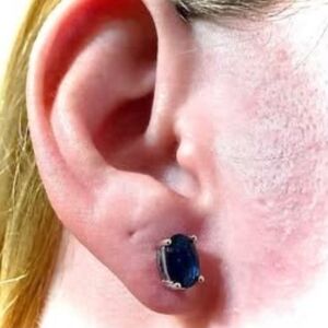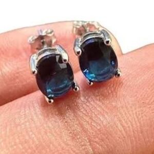 Blue Sapphire Earrings Stud Silver Earrings 7x4MM Oval Sapphire Sterling Silver