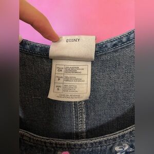 Very rare Lady & The Tramp blue denim overall mini dress from the Disney Store. Labeled size small, may fit a medium. It’s worn but in good condition with no flaws.