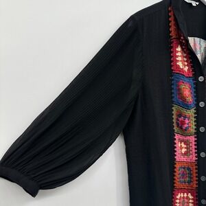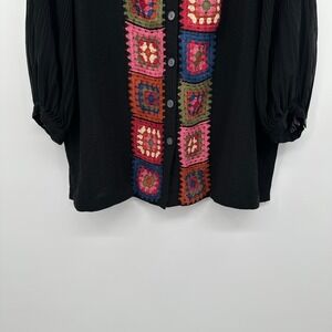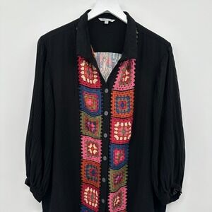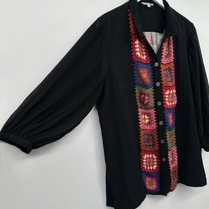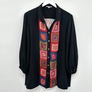 John Mark Top Shirt Size XL Petite Granny Square Crochet Artsy Boho Grunge Indie