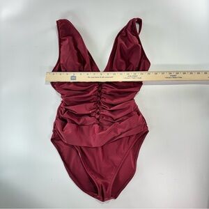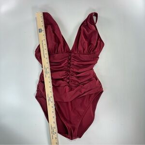 venus swimsuit, venus one piece, womens one piece swimsuit, ruched swimsuit, v neck swimsuit, red swimsuit, size 14 swimsuit, lined swimsuit, adjustable strap swimsuit, flattering swimsuit, pool swimwear, beach swimsuit, resort swimwear, solid color swimsuit, womens swimwear, venus swim, modest swim, vacation swim, summer swimwear, womens bathing suit, red one piece, classic swimsuit
