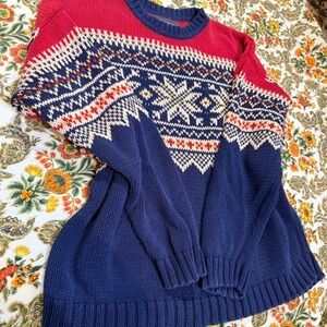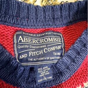 Vintage Abercrombie & Fitch Mens Red Navy Fair Isle Sweater Cotton Blend - L
