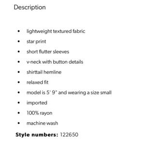 Maurices White Star Flutter Sleeve Button Front Top Small. Boho feel to this lightweight top. Excellent condition. Worn once. Not dried.
