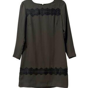 NWT Ann Taylor Charcoal Gray Long Sleeve Shift Dress with Black Lace Detail Sz 4