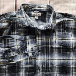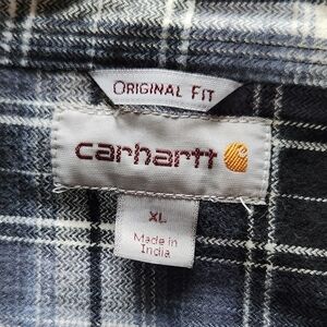 Carhartt Men's "Hubbard Plaid Shirt" Original Fit Long Sleeve Flannel Navy Blue Black Grey White, Size Extra Large.