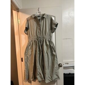 Ruti poplin Khaki Smocked Waist Midi Shirt Dress Size XL 100% Cotton