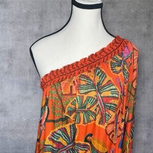 Farm Rio X Anthropologie Dress One Shoulder Toucan Leaf Hawaiian Floral Womens S