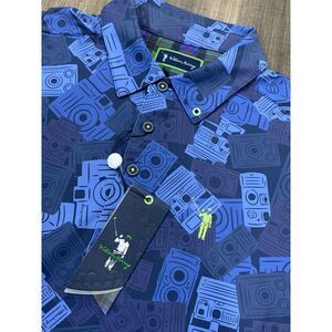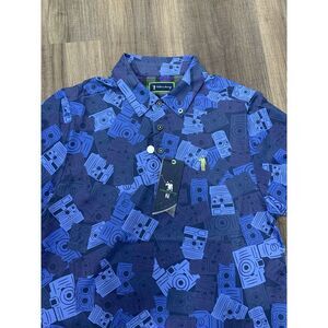 William Murray Mens Candid Camera Polo Golf Shirt Small Performance Stretch Blue