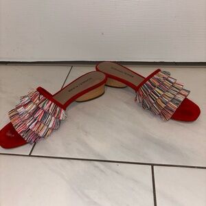 Donald J. Pliner Funky Colorful Multicolor Fringe Red Sandals