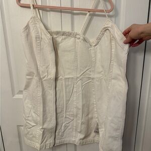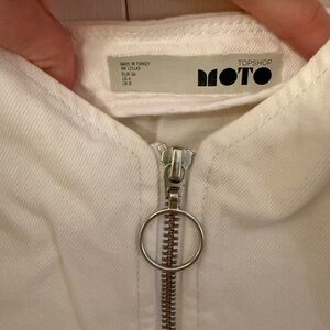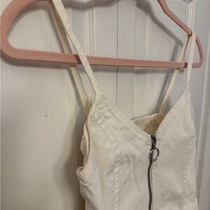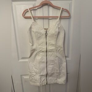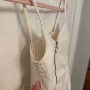 Topshop MOTO ivory dress with zip-front. Features sleek design and thin straps. Size 4