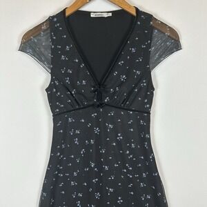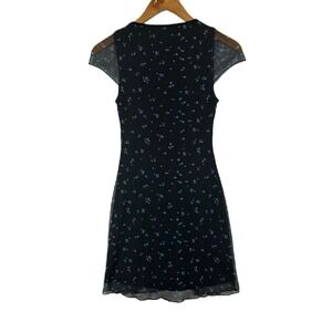 Suite Benedict Women's Black Floral Sheer Sleeve Mini Dress Small Whimsigoth