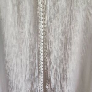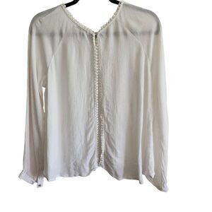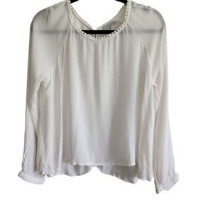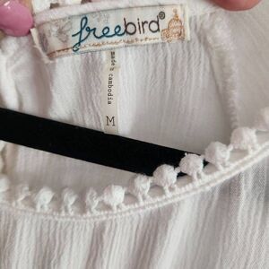 Freebird Top Blouse Womens Medium Boho Gauze Crochet Lace Trim Open Back