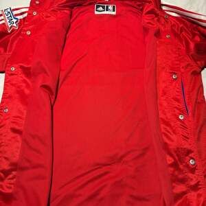 Vintage Adidas LA Clippers 2011 NBA All-Star Game Warm-Up Jacket, Red, Men's Size L2. Front features the Clippers script with a full snap closure. Includes rare 2011 Los Angeles All-Star patch on the sleeve and the classic NBA logo on the back collar. This is an authentic on-court style piece from the Adidas NBA era. Great for collectors and fans. Good pre-owned condition with some light signs of honest wear typical for its age. All snaps are functional and the embroidery is crisp. Made of 100% polyester track material.
