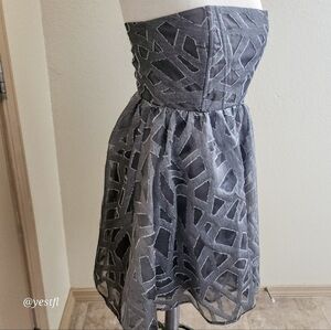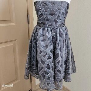Alice + Olivia Grey Kristin Strapless Gray Dress Textured Fit Flare Abstract 6