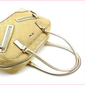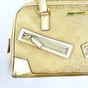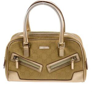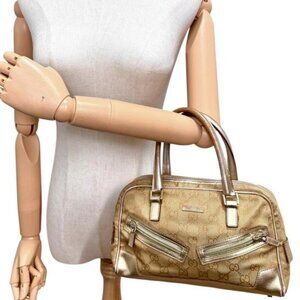 SALE! Vintage Gucci Princy GG Logo Gold Bowler Boston Bag Satchel Canvas Leather