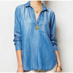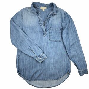 Cloth & Stone Womens Chambray Popover Tunic Size S Blue Long Sleeve Collared