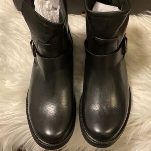 NIB! Elegant Frye boots with buckle accents. Crafted from premium black leather.