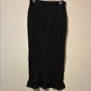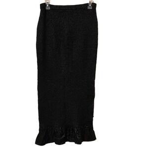 Pleats Collection Black Popcorn Knit Maxi Skirt Ruffle Hem Small