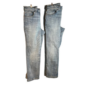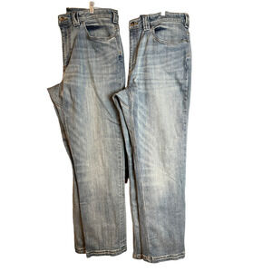 I got Two Men’s Ballroom Double Flex Relaxed Fit Jeans / Size 36x34 / Color Washed Light Denim / Abrasion Resistant / Crouch Gusset / Stretch / Triple-Stitched / Pre-Owned Measurement-Inseam 33"Inches,Ankle 8.5" Inches, Front Rise 11.5"