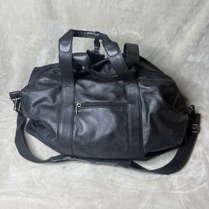 TUMI 22"x10"x17" Black LEATHER Weekender Duffel DUFFLE BAG Travel 92153D4 *Read*