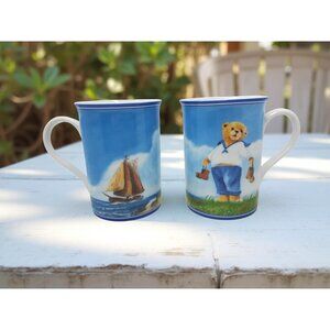Vintage Set Of 2 Teddington Bear & Sailboat Design Mugs