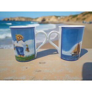 Add a touch of nostalgia to your collection with these charming vintage mugs featuring Teddington Bear and a sailboat design. Perfect for sipping your favorite beverage with a hint of whimsy.