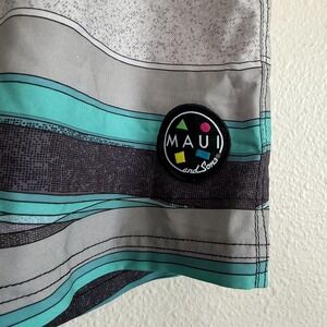 Maui & Sons Board Shorts Men's 36 Gray Striped Drawstring Swim Trunks Stretch.