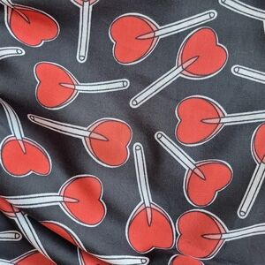 This dress is absolutely adorable, fun and kitschy! Split sleeves and collar with an all over heart lollipop print! Reminiscent of Betsey Johnson,Sourpuss, or Modcloth styles.