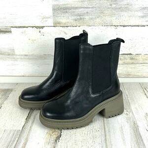 Vince Camuto women’s size 5.5M Anikaa ankle boots in smooth black leather. These brand-new slip-on boots feature elastic side panels, a sleek rounded toe, and a low stacked heel for everyday comfort and style. Perfect for pairing with jeans, dresses, or workwear, they offer timeless versatility with Vince Camuto’s signature modern edge. Ideal for year-round wear, from office days to weekend outings.