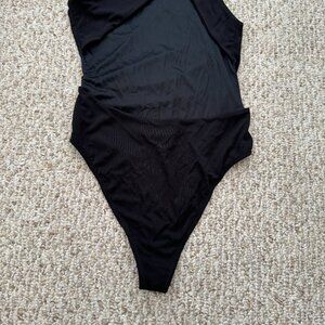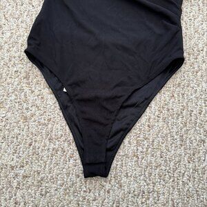 Zara Black Bodysuit Sexy Strap Back with Silver Embellished Bow Holiday XS