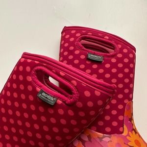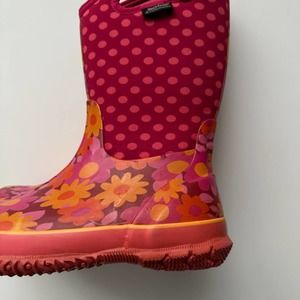 BOGS Girls EUC Flower Dots Rubber Waterproof Insulated Boots Kids Size 5 Pink