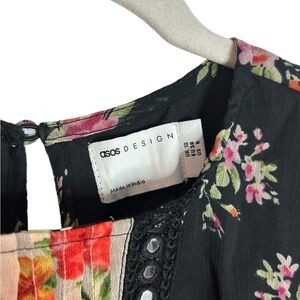ASOS Black Patchwork Floral Smock Dress with Cutout Fully Lined Womens Sz US 6