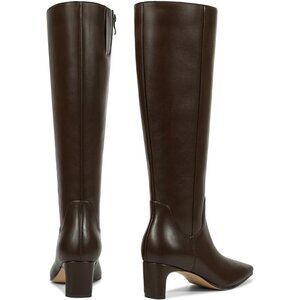 Women’s Brown Knee High Chunky Block Heel Square Toe Side Zipper Tall Boots