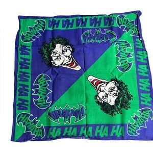 Vibrant scarf featuring the Joker. Blue and green design. Perfect for Batman fans.