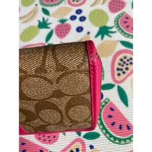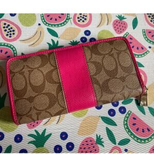 Coach Hot Pink and Brown Monogrammed Long Zip Wallet