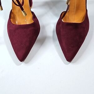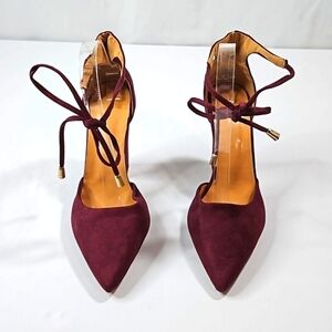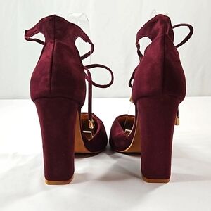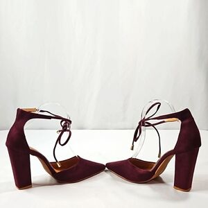 Hengsong Purple Wrap Around Strap Suede Block Women's Heels Sz 39