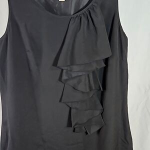 Black polyester dress with beautiful ruffle detail. Excellent Preloved Condition