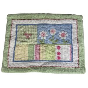 Pottery Barn Kids Quilted Pillow Sham Cover Floral Patchwork Green White Pink