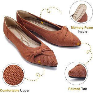 Women's Pointed Toe Knit Brown Flats Comfortable Lightweight Dressy Casual Shoes