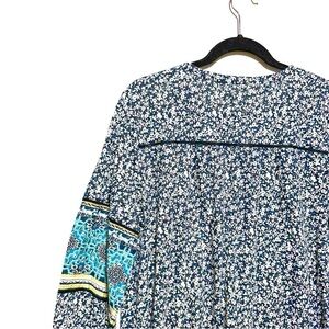 J. Jill Cotton Blend Floral Print Boho Tunic Top In Petite Large Multicolored