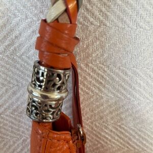 Stylish orange hobo bag by Brighton. Features a braided handle and heart charm. Perfect for any occasion.