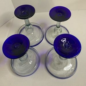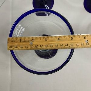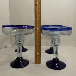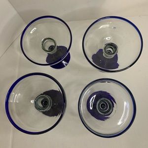 Setnof 4 Elegant margarita glasses with a striking blue rim. Perfect for entertaining guests.
