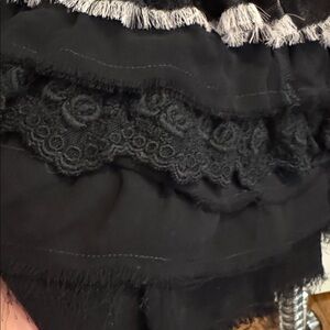 Black thick wool unique design wrap skirt (can use a large skirt kilt pin but not included) or poncho with torn edges
