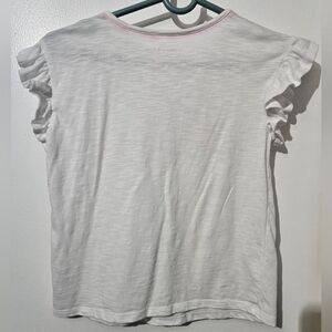 The other shirt says "Hello, Summer" is white and pink with ruffles at the sleeves.