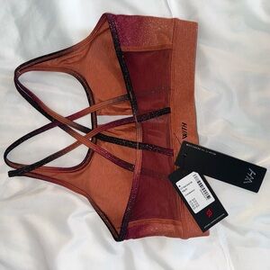 Stylish women's bra and legging set with a stunning shimmering gradient design.