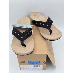 QTY 1 - REVITALIGN Women's Kena Studded Flip-Flop Black Suede Women's Sz 9B NWOB Comfy